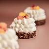 Pâte sablée amandes, crème amandes et brisures de pécan, confit de poire, ganache montée vanille de Tahiti et praliné noix de pécan