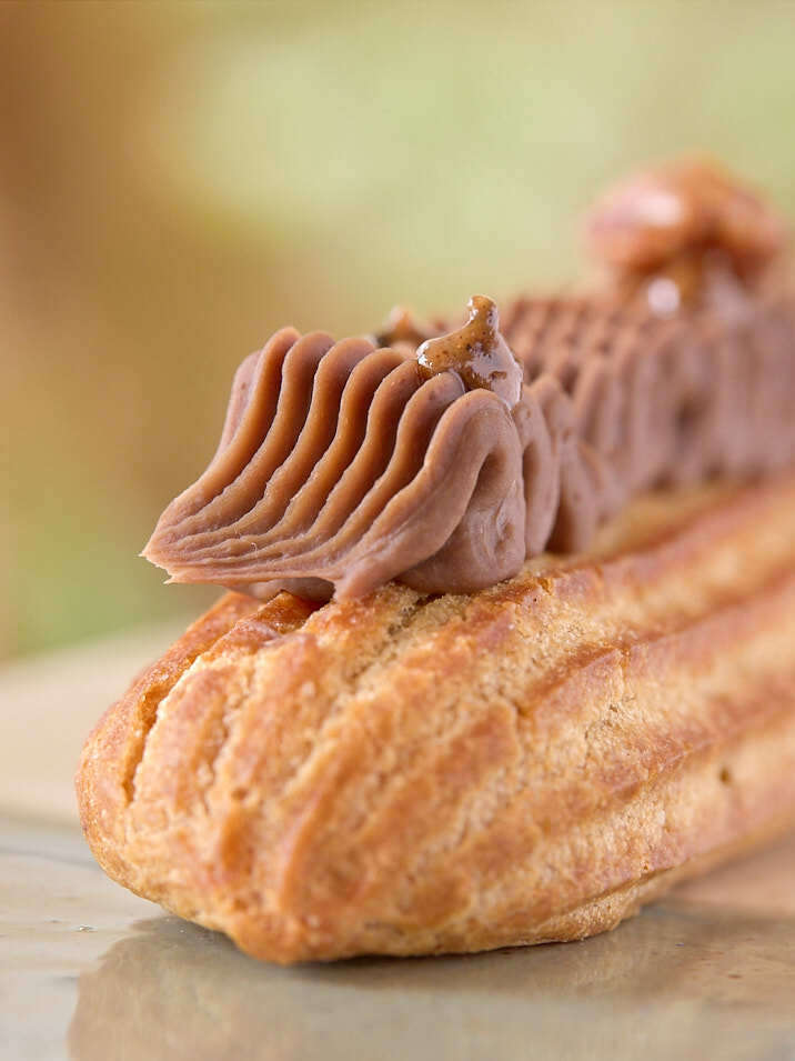 Pâte à choux, praliné amandes et café, crémeux café et fève de tonka